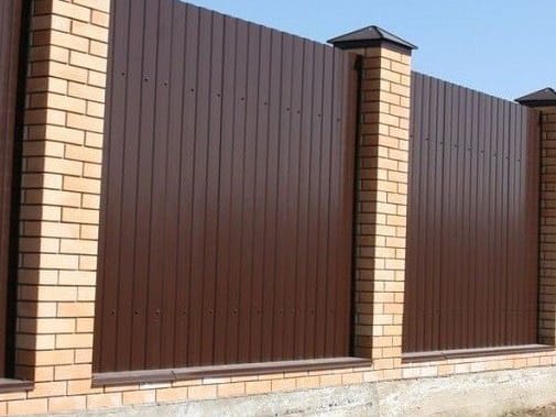 При производстве забора используется на выбор профнастил марок С8, С20, С21 с разной высотой волны и толщиной оцинкованного стального листа от 0.4 до 0.5 мм. Цвет можно выбрать по таблице RAL одностороннего или двустороннего окраса.